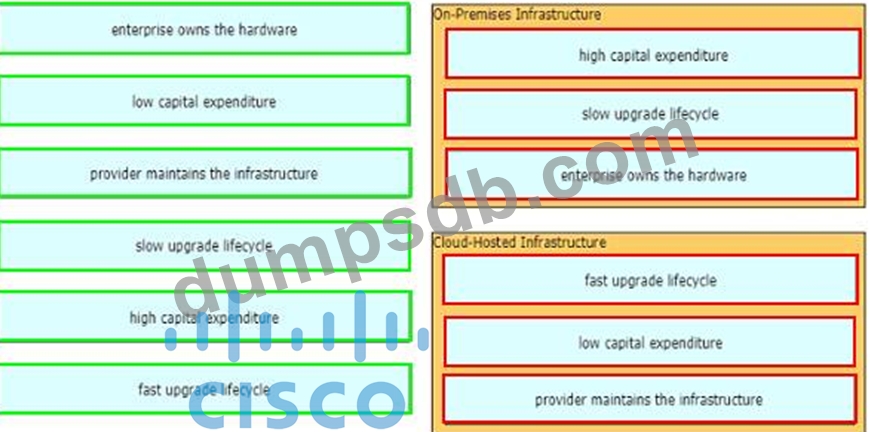 Drag and drop the characteristics from the left onto the infrastructure types on the right.