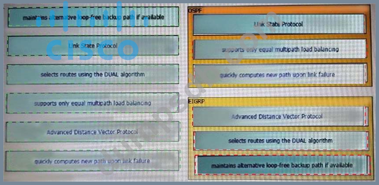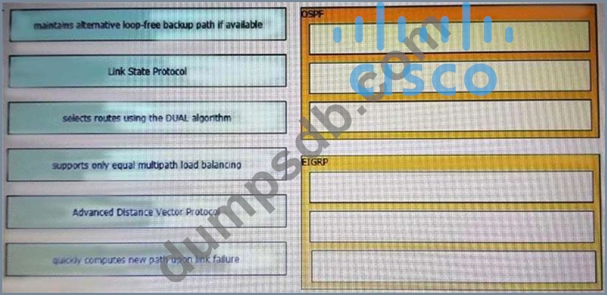 Drag and drop the characteristics from the left onto the routing protocols they describe on the right.