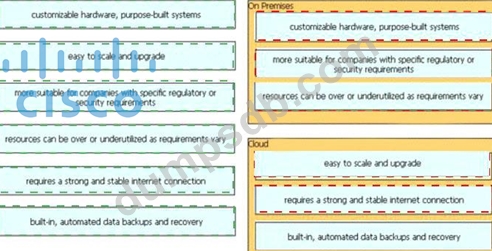 Drag and drop the characteristics from the left onto the appropriate infrastructure deployment types on the right.