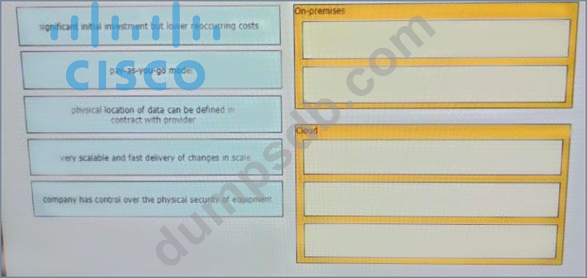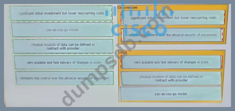 Drag and drop the characteristics from the left onto the correct infrastructure deployment types on the right.