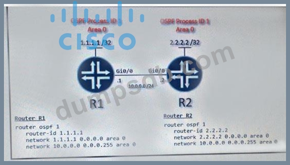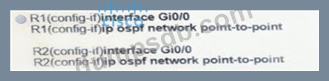 A network engineer is configuring OSPF between router R1 and router R2. The engineer must ensure that a DR/BDR election does not occur on the Gigabit Ethernet interfaces in area 0. Which configuration set accomplishes this goal?