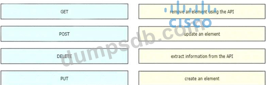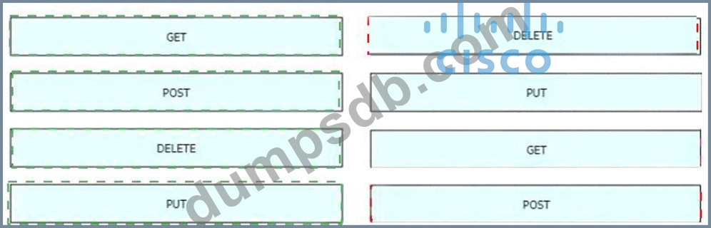 An engineer is working with the Cisco DNA Center API Drag and drop the methods from the left onto the actions that they are used for on the right.