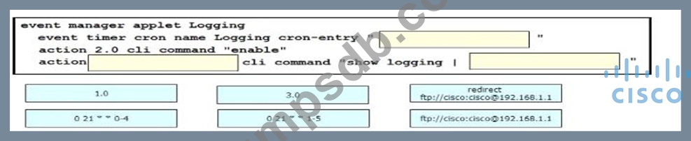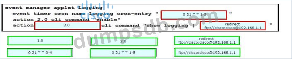 Drag and drop the snippets onto the blanks within the code to construct a script that shows all logging that occurred on the appliance from Sunday until 9:00 p.m Thursday Not all options are used.