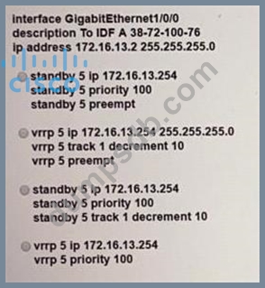 An engineer is configuring GigabitEthernet1/0/0 for VRRP. When the router has the highest priority In group 5, It must assume the master role. Which command set should the engineer add to the configuration to accomplish this task?
