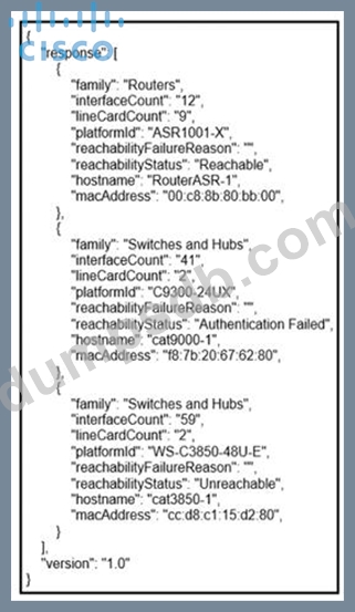 What does the Cisco DMA REST response Indicate?