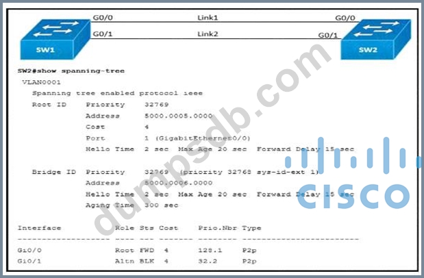 Link1 is a copper connection and Link2 is a fiber connection. The fiber port must be the primary port for all forwarding. The output of the show spanning-tree command on SW2 shows that the fiber port is blocked by spanning tree. An engineer enters the spanning- tree port-priority 32 command on GO/1 on SW2, but the port remains blocked. Which command should be entered on the ports that are connected to Link2 to resolve the issue?