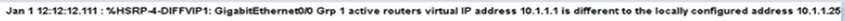 While configuring an IOS router for HSRP with a virtual IP of 10 1.1.1. an engineer sees this log message.
