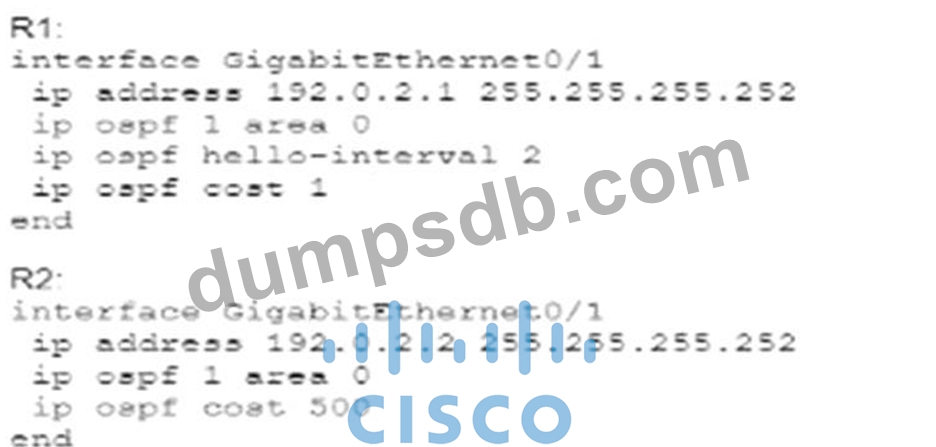 Based on this interface configuration, what is the expected state of OSPF adjacency?