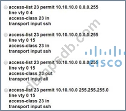 Only administrators from the subnet 10.10.10.0/24 are permitted to have access to the router. A secure protocol must be used for the remote access and management of the router instead of clear-text protocols.