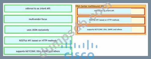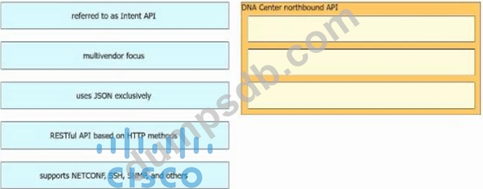 Drag and drop the Cisco Catalyst Center (formerly DNA Center) northbound API characteristics from the left to the right. Not all options are used.