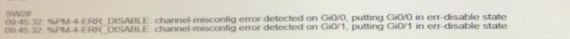 After an engineer configures an EtherChannel between switch SW1 and switch SW2, this error message is logged on switch SW2.