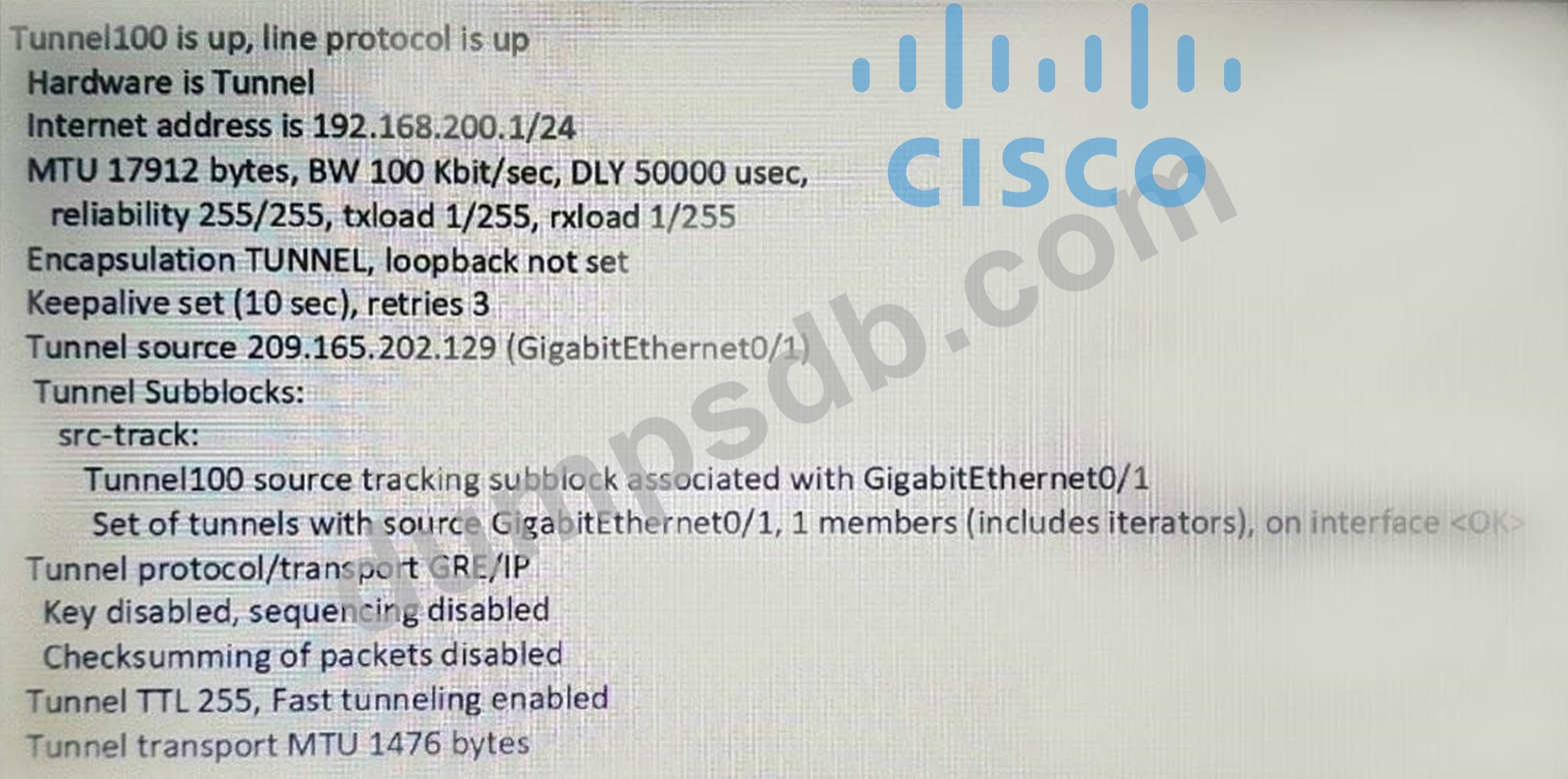 Refer to the exhibit. A network engineer configures a GRE tunnel and enters the show Interface tunnel command. What does the output confirm about the configuration?