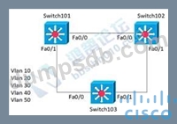 Switch101 must always be the root for VLANs 20 and 40. Which two command sets must be applied? (Choose two.)