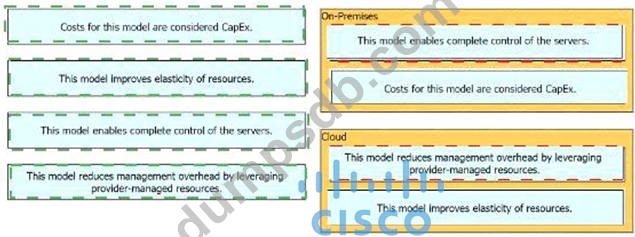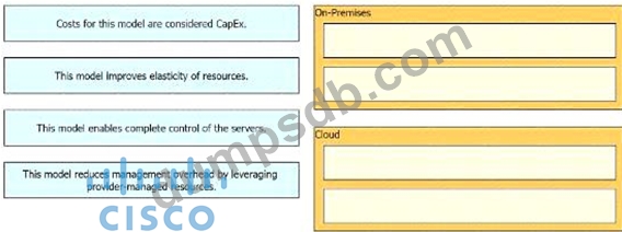 Drag and drop the characteristics from the left onto the infrastructure deployment models on the right.