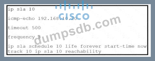 The IP SLA is configured in a router. An engineer must configure an EEM applet to shut down the interface and bring it back up when there is a problem with the IP SLA. Which configuration should the engineer use?