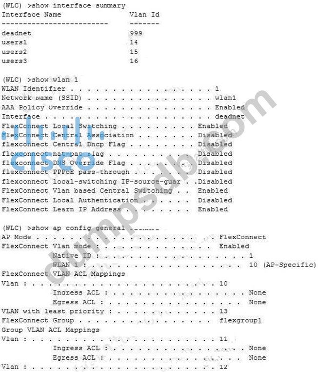 A wireless client is connecting to FlexAP1 which is currently working standalone mode. The AAA authentication processis returning the following AVPs: