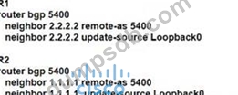 Which configuration must be applied to routers R1 and R2 to fix the problem?