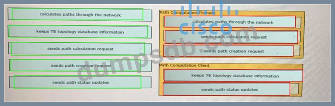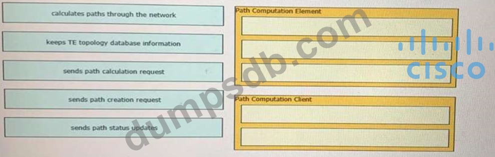 Drag and drop the functions from the left onto the correct Path Computation Element Protocol roles on the right
