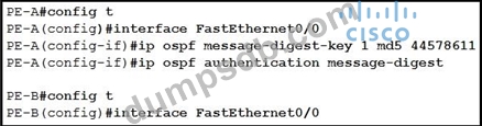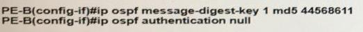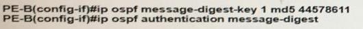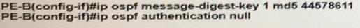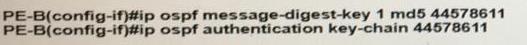 An engineer wants to authenticate the OSPF neighbor between PEA and PE-B using MD5.