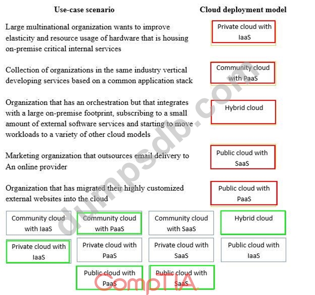 Drag and drop the cloud deployment model to the associated use-case scenario. Options may be used only once or not at all.