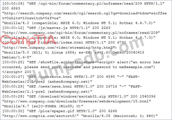 The web host administrator collects the log files below and gives them to the development team so improvements can be made to the security design of the website.