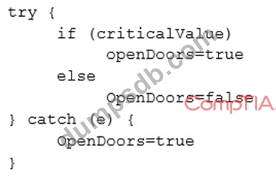 The code snippet below controls all electronic door locks to a secure facility in which the doors should only fail open in an emergency. In the code, "criticalValue" indicates if an emergency is underway: