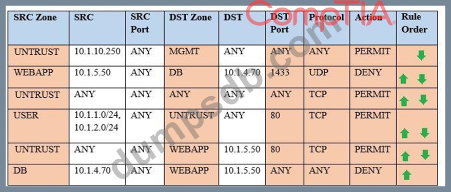 Compliance with company policy requires a quarterly review offirewall rules. You are asked to conduct a review on the internal firewall sitting between several internal networks. The intent of this firewall is to make traffic more secure. Given the following information perform the tasks listed below: