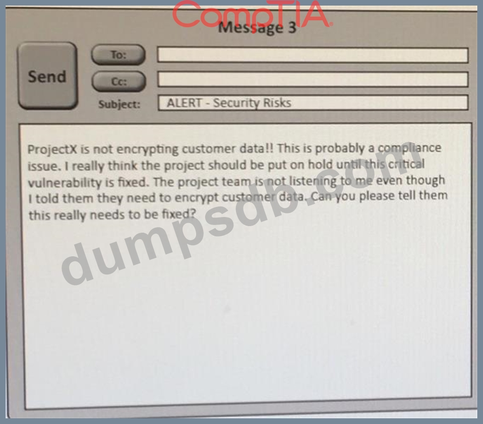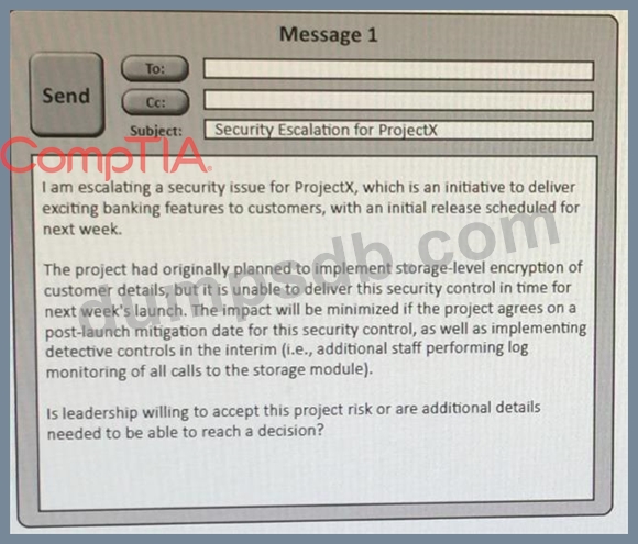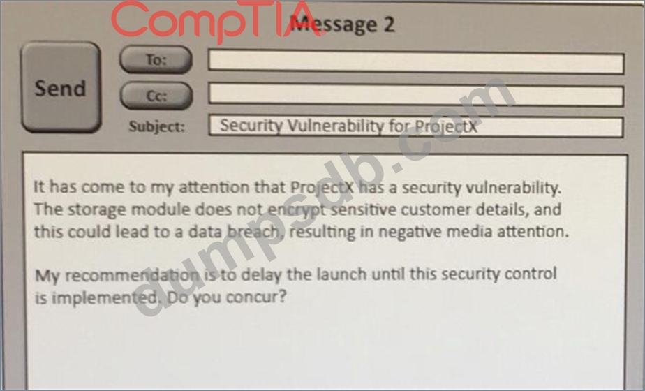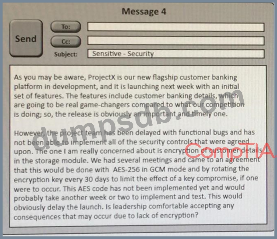 A security architect is working with a project team to deliver an important service that stores and processes customer banking details. The project, internally known as ProjectX, is due to launch its first set of features publicly within a week, but the team has not been able to implement encryption-at-rest of the customer records. The security architect is drafting an escalation email to senior leadership.