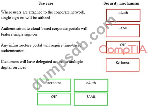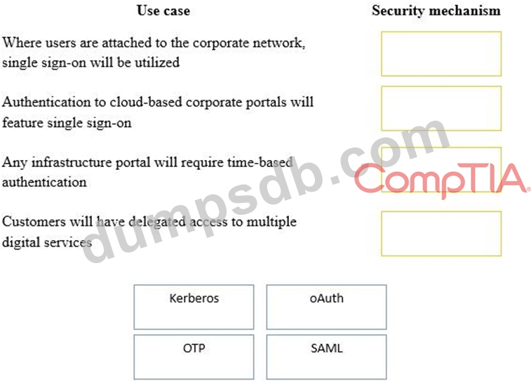 A security consultant is considering authentication options for a financial institution. The following authentication options are available. Drag and drop the security mechanism to the appropriate use case. Options may be used once.