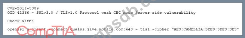 The developers recently deployed new code to three web servers. A daily automated external device scan report shows server vulnerabilities that are failing items according to PCI DSS. If the vulnerability is not valid, the analyst must take the proper steps to get the scan clean. If the vulnerability is valid, the analyst must remediate the finding. After reviewing the given information, select the STEP 2 tab in order to complete the simulation by selecting the correct "Validation Result" AND "Remediation Action" for each server listed using the drop down options.