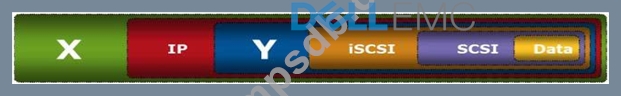 The graphic shows the encapsulation of SCSI data for its delivery over an iSCSI network. What do the labels "X" and "Y" represent in the graphic?