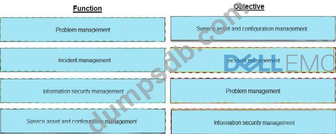 Match each key functions of service operation management with its objective.