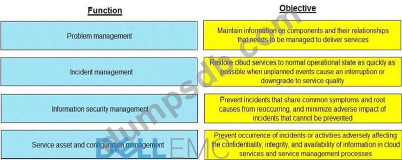 Match each key functions of service operation management with its objective.