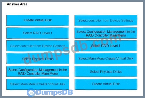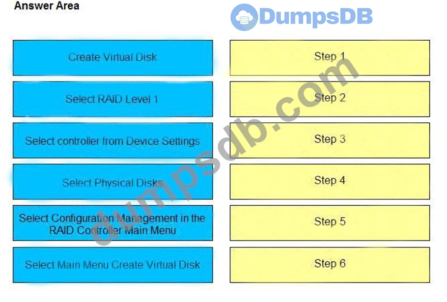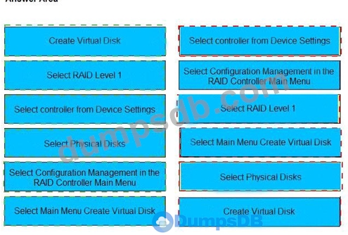 An administrator needs to configure RAID 1 in System Setup. Place the sequence in the correct order.