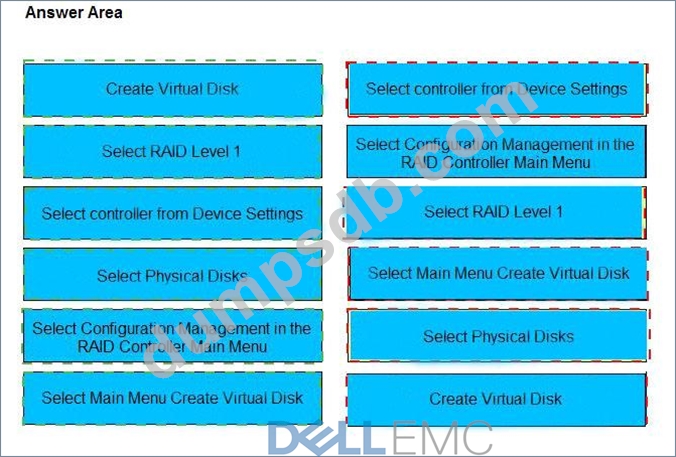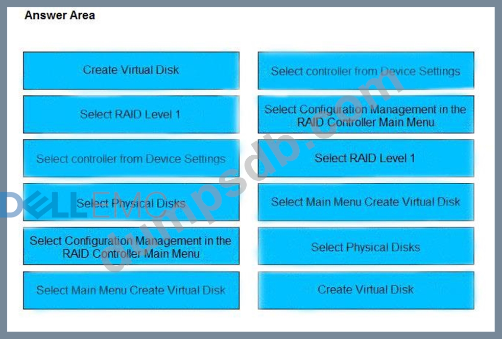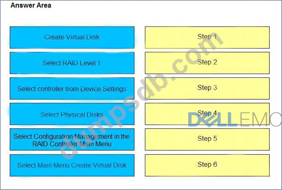 An administrator needs to configure RAID 1 in System Setup. Place the sequence in the correct order.
