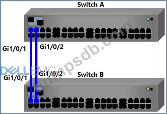Switch A and Switch B are connected to each other. Both switches use interfaces Gi1/0/1 and Gi1/0/2.