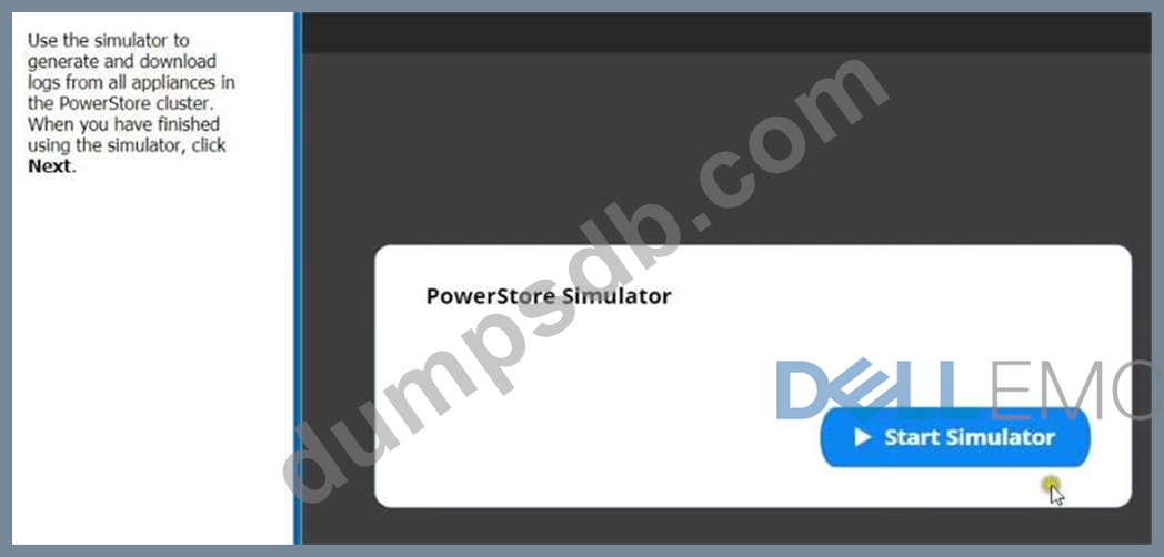 Use the simulator to generate and download logs from all appliances in the PowerStore cluster. When you have finished using the simulator, Click Next.