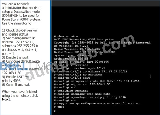You are a network administrator that needs to setup a Data switch model S5248F-ON to be used for PowerStore 7000T system Use the Simulator to: