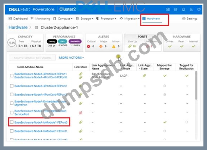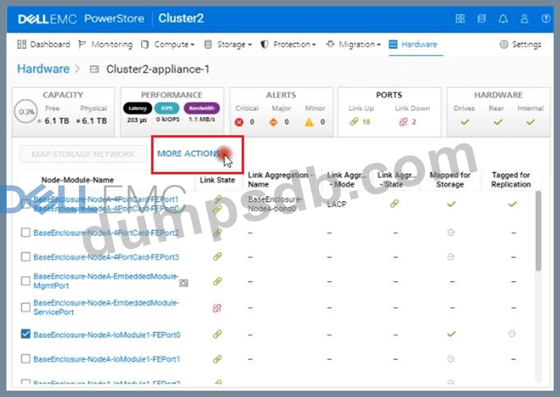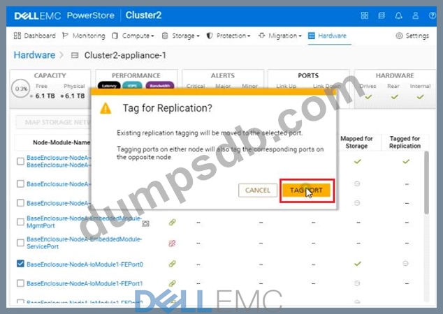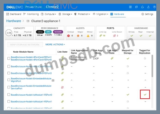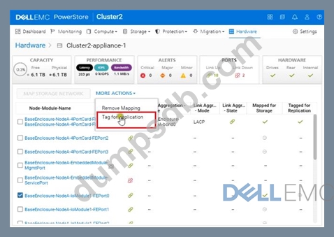 Use the PowerStore Manager simulator to configure the BaseEnclosure-NodeA-IoModule1-FEport0 as a replication port. When you have finished using the simulator, Click Next.