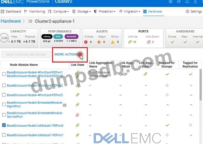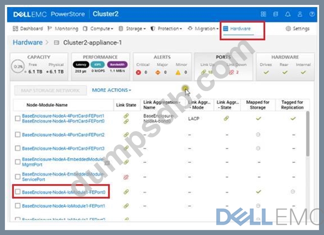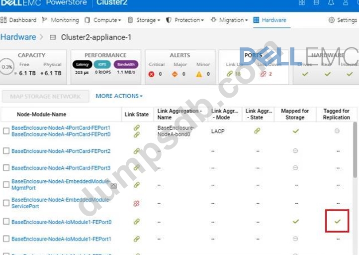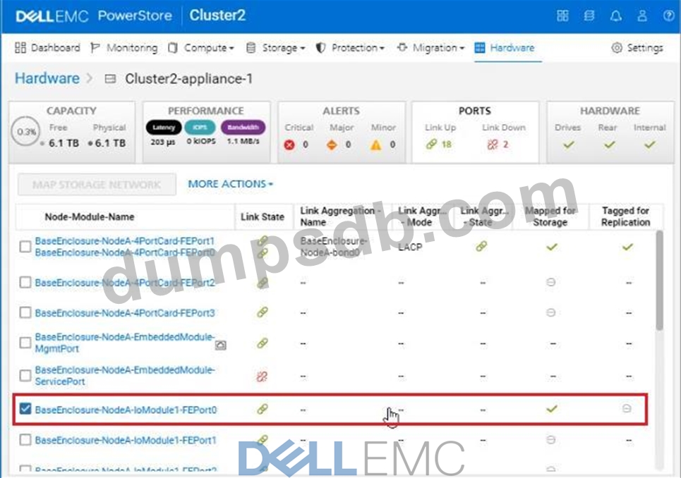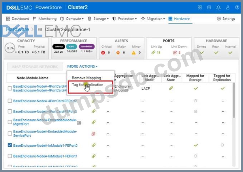Use the PowerStore Manager simulator to configure the BaseEnclosure-NodeA-IoModule1-FEport0 as a replication port. When you have finished using the simulator, Click Next.