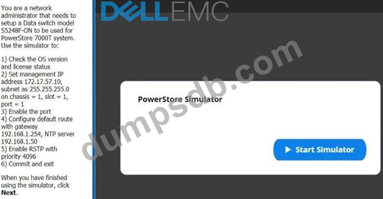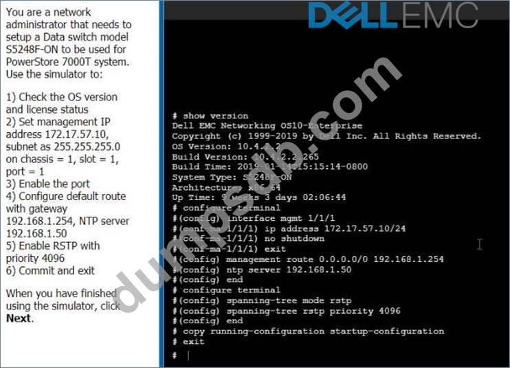 You are a network administrator that needs to setup a Data switch model S5248F-ON to be used for PowerStore 7000T system Use the Simulator to: