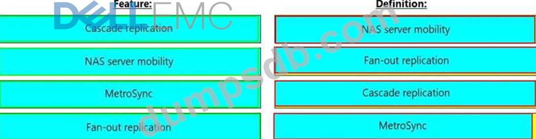 Match each Dell EMC Unity feature with its destination.