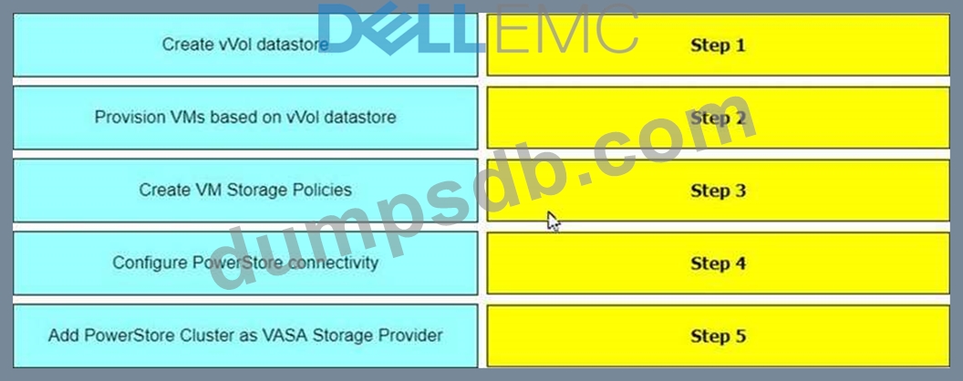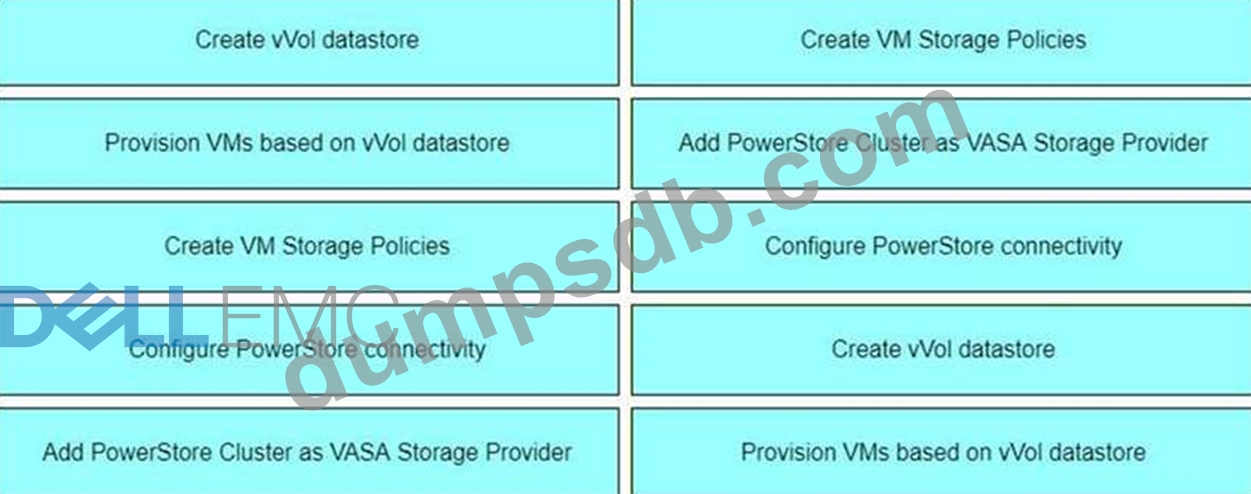 In vCenter, what is the correct order of steps to create a VM in a storage container provisioned on a Dell EMC Power Store system?