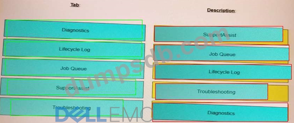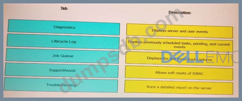 Match each IDRAC Maintenance page tab to its description.