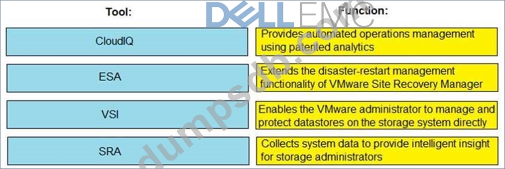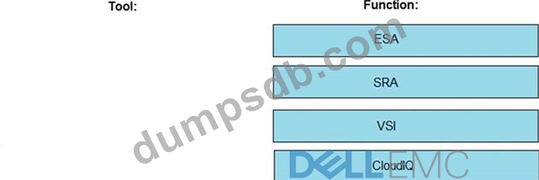 Match each Dell EMC tool to its respective function.