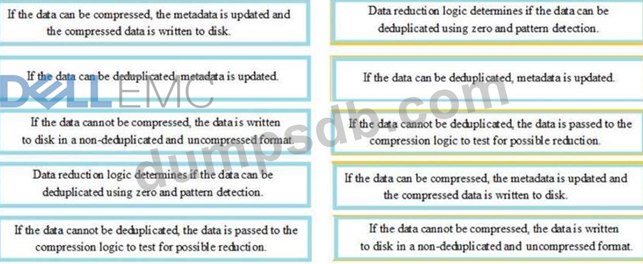 The cache has sent data to the Data Reduction logic during proactive cleaning or flushing. What is the correct sequence of steps taken by the Data Reduction logic?