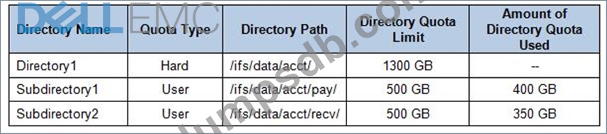 An Isilon customer's administrator created the nested directory structure, shown in the exhibit, using SmartQuotas. However, a user needs to write an additional 650 GB of data to