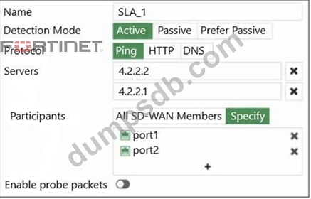 Why is FortiGate not sending probes to 4.2.2.2 and 4.2.2.1 servers? (Choose two.)