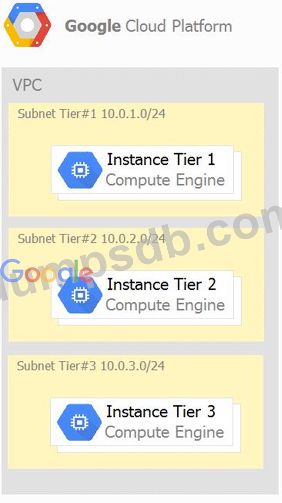Your company has a 3-tier solution running on Compute Engine. The configuration of the current infrastructure is shown below.