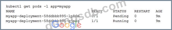 You check the status of the deployed pods and notice that one of them is still in PENDING status: